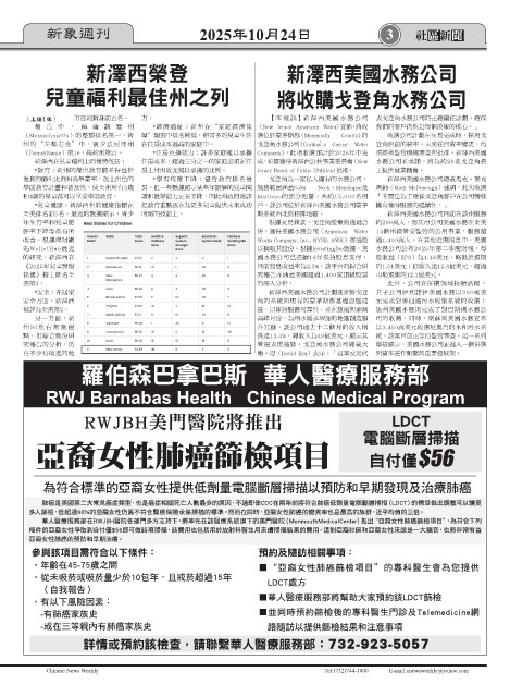 華人醫療服務部在RWJBH醫院各部門多方支持下,將率先在該醫療系統旗下的美門醫院(MonmouthMedicalCenter)推出“亞裔女性肺癌篩檢項目”,為符合下列