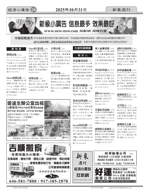 房 地 產 Edison辦公室出租 1385F 大房出租 1562 生意投資轉讓 華人倉庫招聘 1568C 誠聘中文老師/助教 1559C