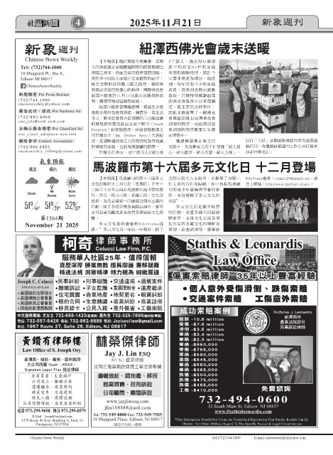 Chinese News W eekly Tel:(732)744-1000 E-mail:cnewsweekly@yahoo.com Chinese News W eekly T el:(732)744-1000 E-mail:cnewsweekly@yahoo.com
